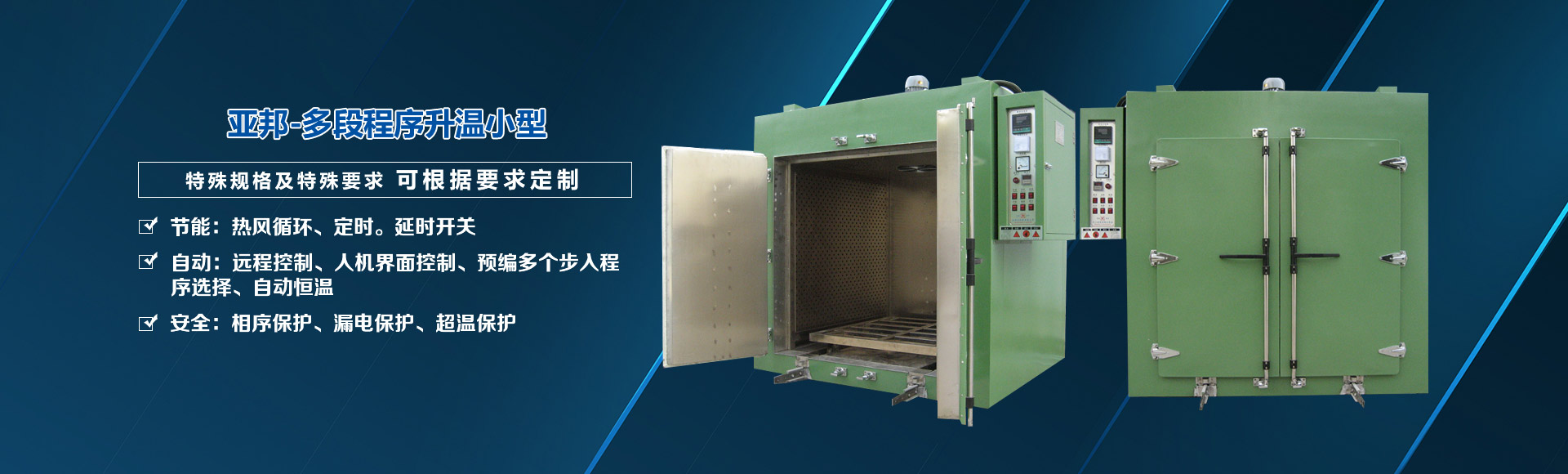 吳江市亞邦電熱科技有限公司是烘箱、烤箱、工業烘干箱、熱風循環烘箱、臺車烘箱、隧道烘箱、浸漆… 了解詳情+